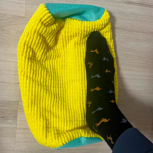 El material acolchonado del LavaZap amortigua el movimiento de los zapatos, reduciendo significativamente el ruido durante el lavado. Un ciclo más silencioso, sin golpes molestos.